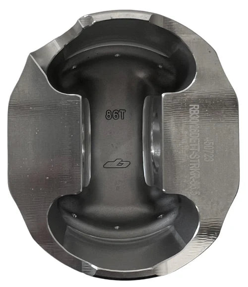 Our whole piston range is manufactured by CP Carrillo, based in California, USA. CP Carrillo are a subsidiary of Pankl Racing who are an Austrian automotive components manufacturer that manufacture components for the highest levels of motorsport including Formula 1, Le Mans Prototypes and Moto GP just to name a few. This means that every Nitto piston benefits from world leading technologies and processes that are passed from Pankl onto CP. Nitto pistons are made to our own specifications in conjunction with CP Carrillo and are cut from CP’s low silicon content 2618 aluminium and Turbo HD forging (where applicable). Additionally, our pistons are accompanied by a PVD coated ring set which deliver the best bore sealing capabilities for boosted applications, eliminating virtually all blow by while reducing the friction against the cylinder wall. As part of the piston kit, CP’s upgraded 9310 material wrist pins are standard across our range. The pins are 100% Rockwell tested, case hardened and cryogenically treated in order to enhance their material grain structure and overall strength. All Nitto pistons also come standard with additional features such as forced double pin oiling which is essential to keep the wrist pin well lubricated. Anti-detonation grooves are also included. Anti detonation grooves reduce piston to wall contact under high load and also protect the top ring by disrupting the detonation waves. Finally, another feature that is standard across our piston range are the accumulator grooves. Accumulator grooves accumulate residual gasses from combustion which alleviate top ring flutter and premature second ring wear, improving ring seal. All of these features combine to create the world beating pistons that boast multiple world records across multiple categories in drag racing and circuit racing.